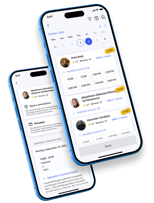 Почніть роботу з психологом із вигідною пропозицією: забронюйте 9 консультацій і отримайте 10-ту в подарунок. Деталі програми можна обговорити під час пробної консультації. Завантажте застосунок, оберіть психолога та запишіться на першу зустріч вже сьогодні.