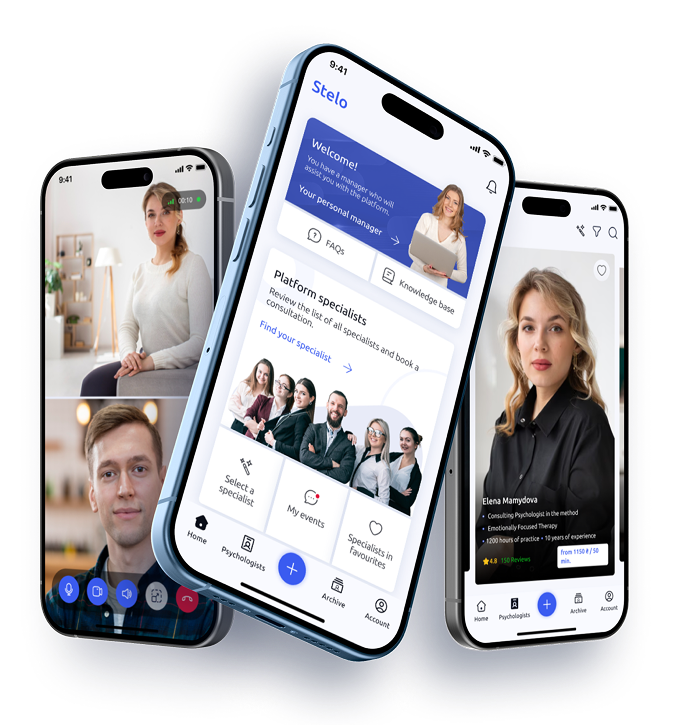 Психологи Stelo працюють із найпоширенішими психологічними запитами: тривожність, стрес, сімейні труднощі, адаптація до міграції, воєнна травма та ПТСР.
